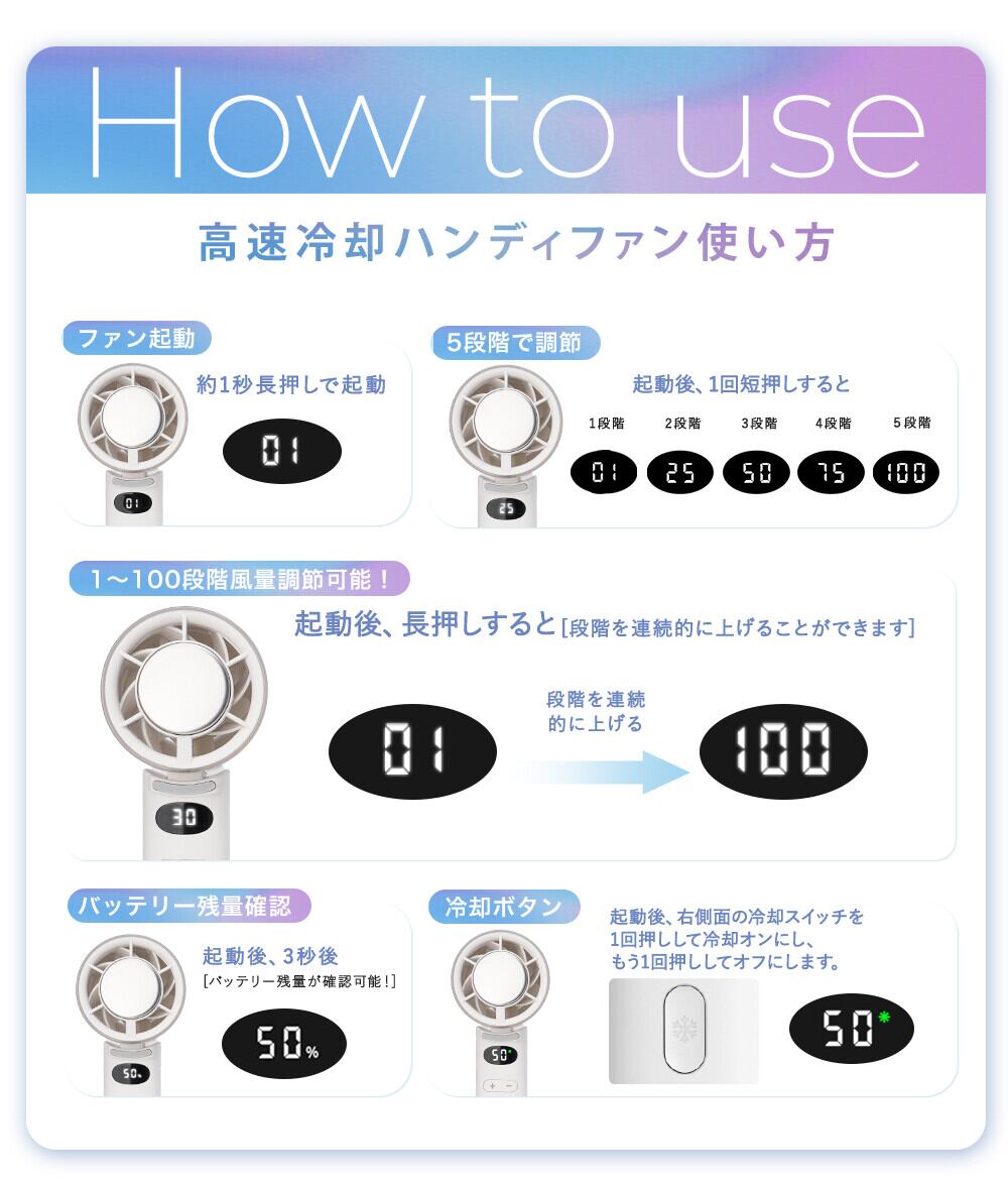 高速冷却ハンディファン 100段階 大風量 超軽量 ミニ扇風機 卓上 小型 携帯 Type-C対応 手持ち 長時間