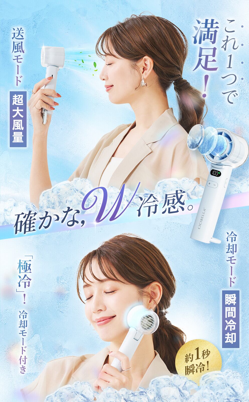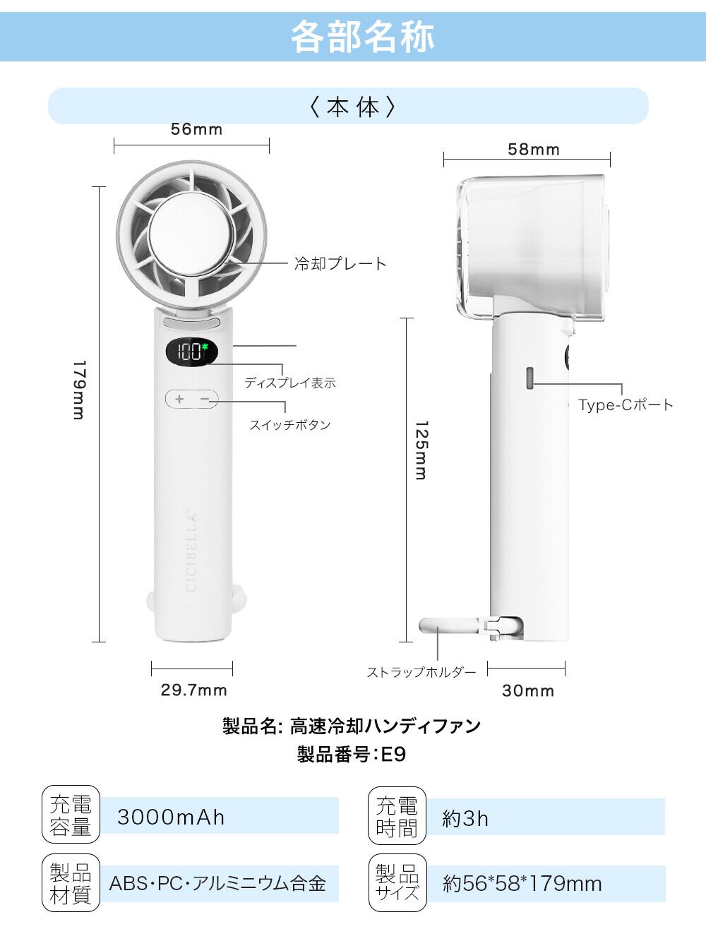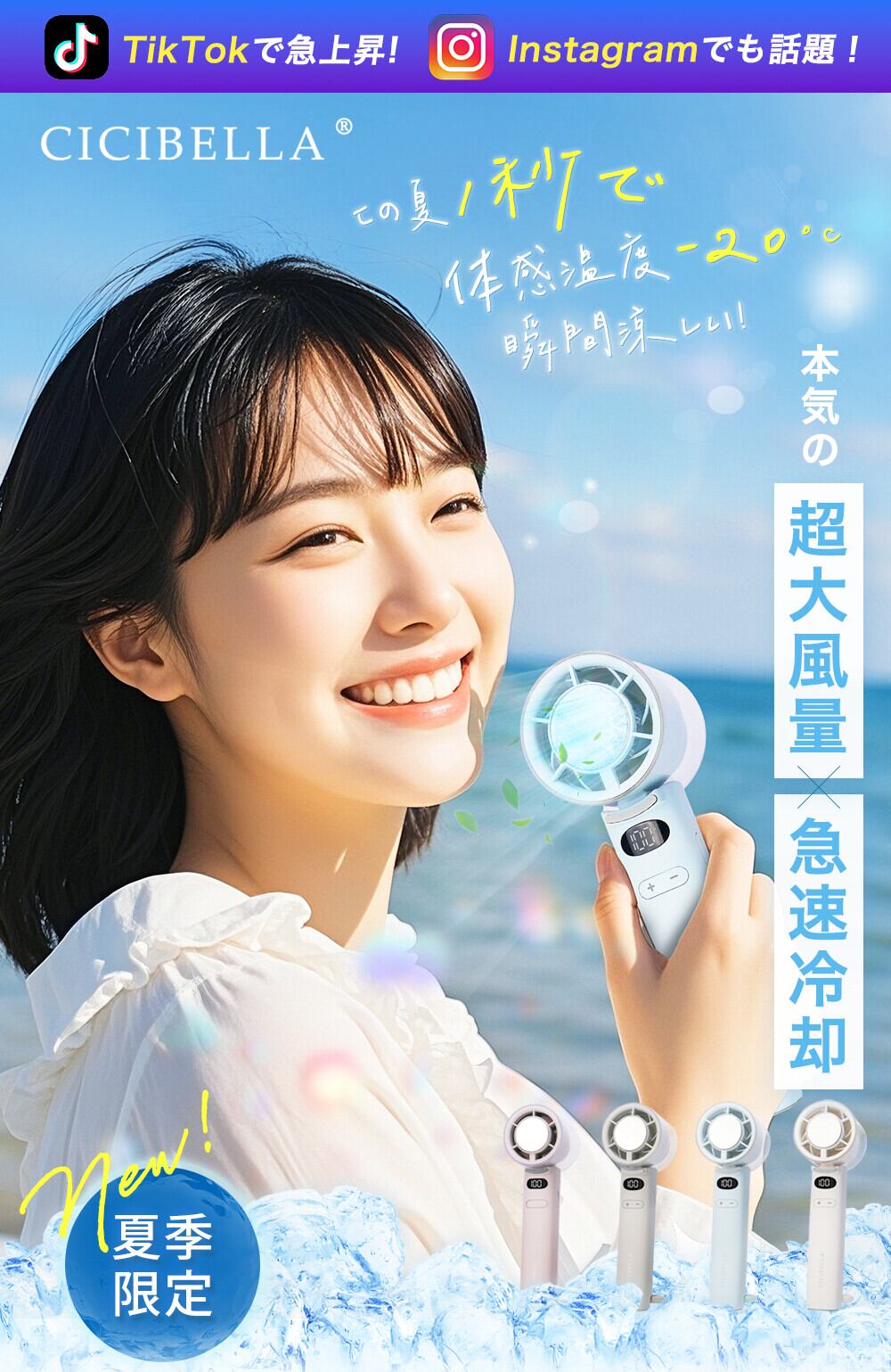\2025夏新登場/CICIBELLA 高速冷却ハンディファン100段階の風量調整 × 強力冷却プレート搭載!片手で持ちやすいコンパクト設計ながら、3000mAh大容量バッテリー で長時間使用可能!風量は1〜100段階まで細かく調整できるので、通勤・オフィス・アウトドアなどあらゆるシーンで最適な涼しさを提供します。POINT強力冷却プレート搭載100段階の風量調整USB Type-C急速充電軽量&コンパクトファンのみ使用なら最長13時間連続運転可能!ファン + 冷却機能を使っても、最長 2時間 の冷却パワー!