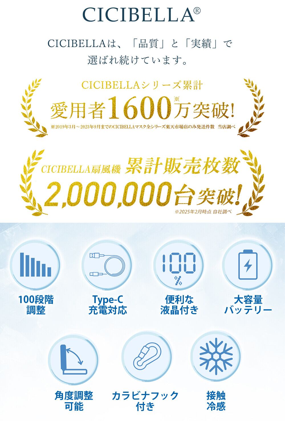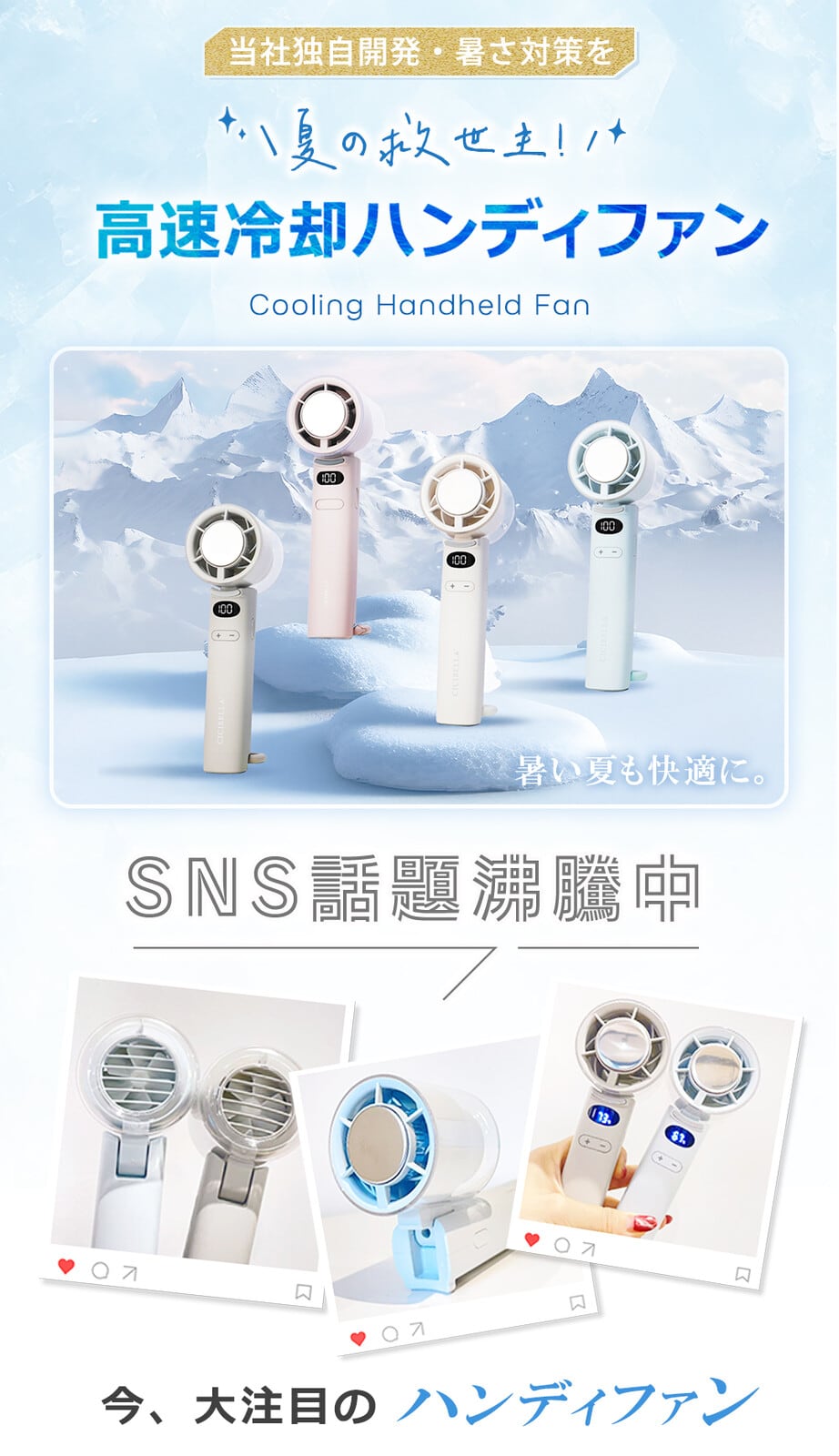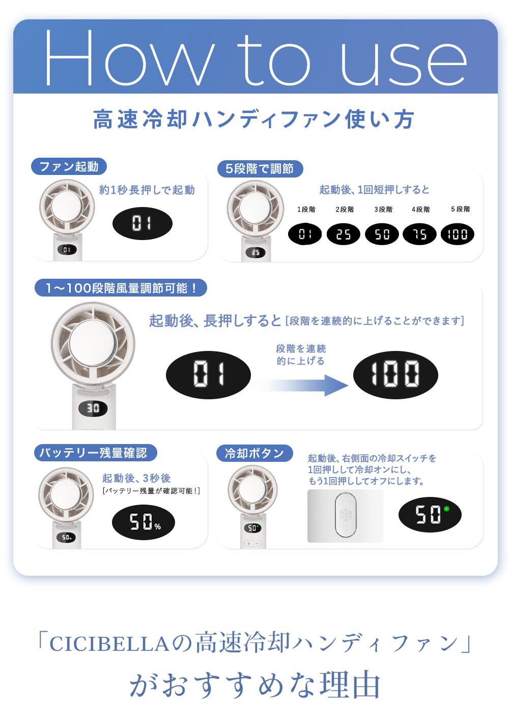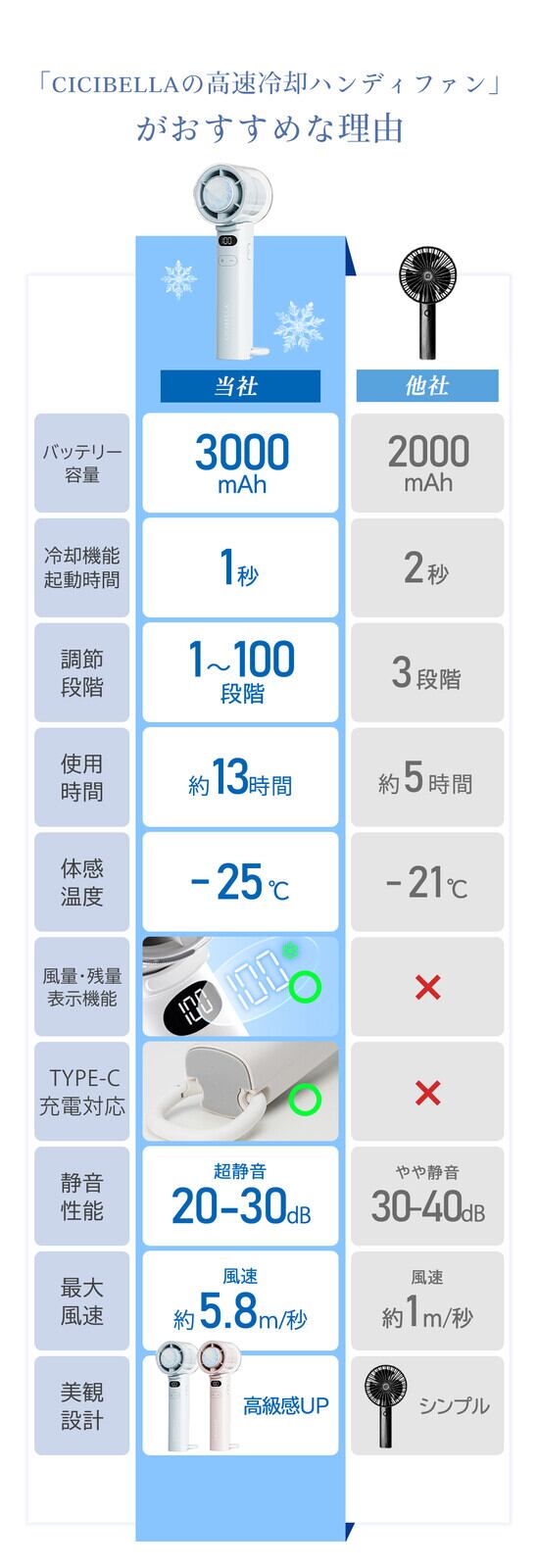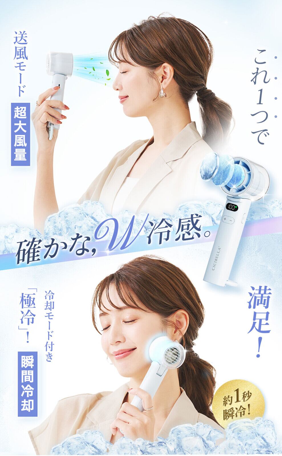 \2025夏新登場/CICIBELLA ディスプレイ付きコンパクト冷却ハンディファン