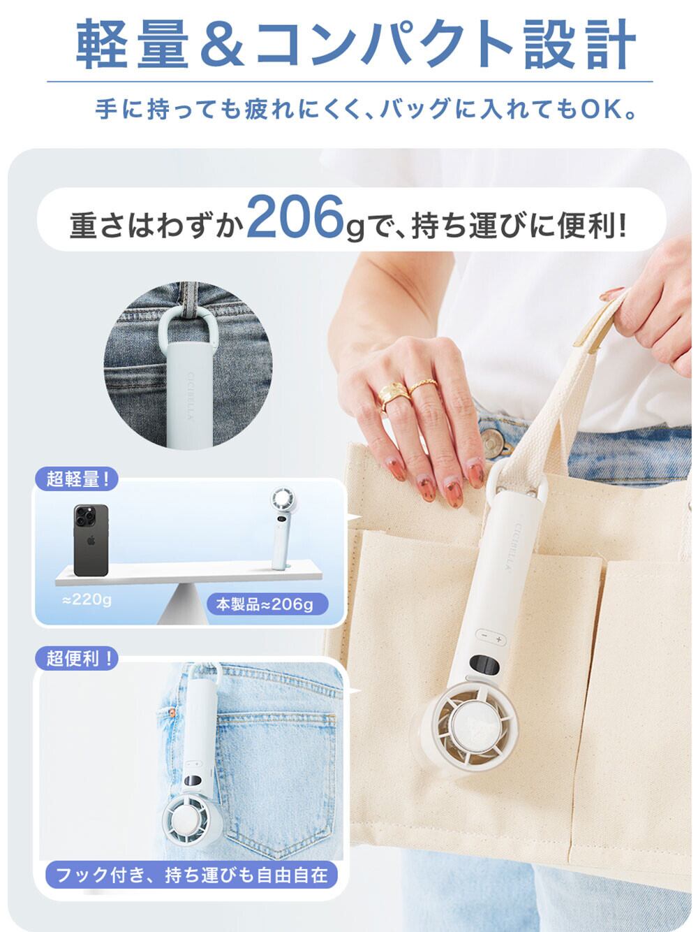 コンパクト&軽量設計(約205g):持ち運びもラクラク!