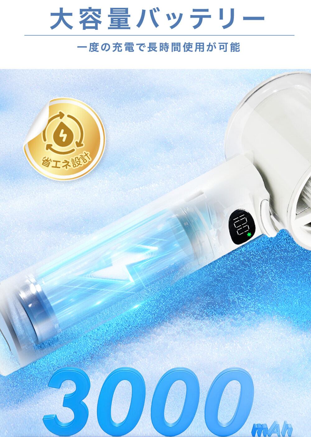 3000mAhの大容量バッテリー搭載 で、最長12.5時間 連続使用可能!