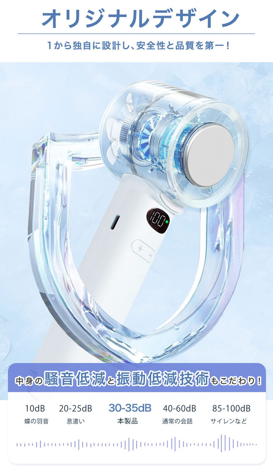 冷却ハンディファン ディスプレイ付き 100段階 超大風量 軽量 本体色ダスティブラウン